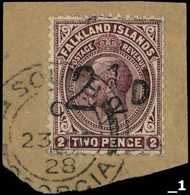 1928 2½d on 2d purple-brown, the South Georgia provisional, used on piece with 23 FE 28 South Georgia CDS. BPA Certificate (1978). SG 115, £1500