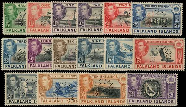 1938-46 set of sixteen perforated SPECIMEN Type B9,
