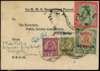 1932 Registered Official Parcel tag from Simla to Rangoon, franked on both sides by KEVII 2r on 10r green and scarlet surcharge and KGV Official 1926-31 4a sage-green, 8a reddish-purple and 1r chocolate & green, all tied by cds, some creasing to piece, still most attractive and scarce. SG O101-O117