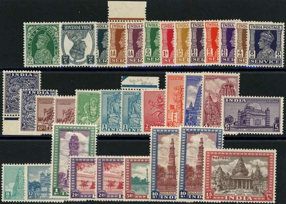 1949-52 Architecture set of sixteen unmounted o.g., with five extra shades including 2r and 10r (the latter not the light blue shade), all fine; also 1937 9p, 1941 3p watermark inverted and 1939 Official set, also unmounted. SG 309-324