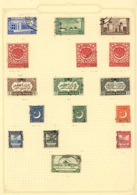 1854-1960s mint and used collection on album leaves, including: 1854 Lithographs with unused ½a blue, 1a red and 2a green, 4a (mixed dies) with one cancelled C-111 Pondicherry in blue, 1856 No Wmk range to 8a, 1865 Wmk Elephants Head to 8a, 1866 6apurple on foreign bill provisional (8)1882-1900 to 5r with some duplication, 1902-11 values to 15r, decent range of KGV & KGVI with 1937 25r, Officials and C.E.F's, Independence issues with 1948 Gandhi set, Pakistan with 1947 set to 25r and other issues, generally fair to fine condition.