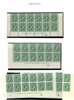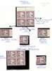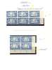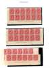 1938-52 Plate blocks and other multiples in blue album, some gaps where basic stamps were removed years ago, leaving the more interesting material. ½d green Plate blocks (12), ½d orange (blocks of 12 plus strip of 6), 1d red (13 plus strip), 1d green (2 plus strip of 3, number at top), 1½d (10 plus strip), 2d (10 including three Fishing Rod blocks), 2½d (two imprint, one un-numbered Plate), 3d ultramarine and green (6), 3d greenish blue and ultramarine (3), and £1 (block of four and pair). Many of the low value blocks are blocks of twelve. Also singles and normal blocks with re-entries, a fine accumulation