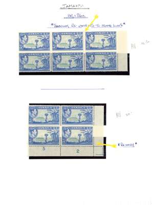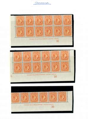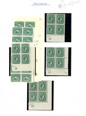 Jamaica 1938-52 Plate blocks and other multiples in album