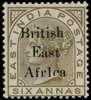 1895-96 stamps of India overprinted on 6a pale brown variety 'Af1ca' for 'Africa' (Row 1/7); part og. Good appearance. SG...