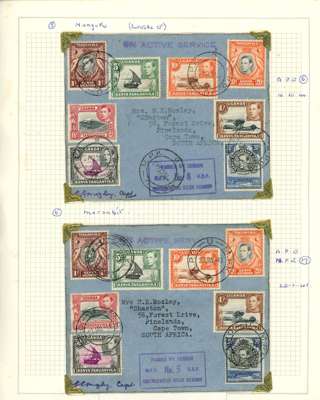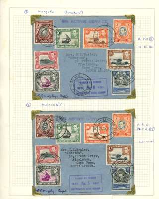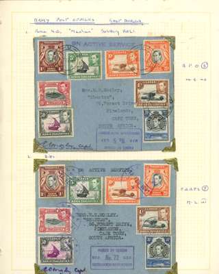 WW2 selection of eight Army PO correspondence covers to Cape Town with assorted frankings and censor marks. Interesting group.
