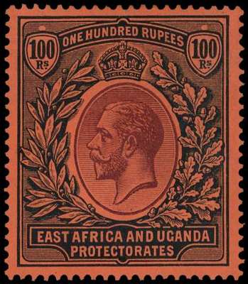 1912-21 100r purple and black on red, superb colour, well centred, Brandon certificate (1992), very fine o.g. SG 62 £9,500