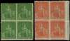BARBADOS: 1861-70 (½d) grass green and (4d) dull vermilion, both in blocks of 4, part o.g.
