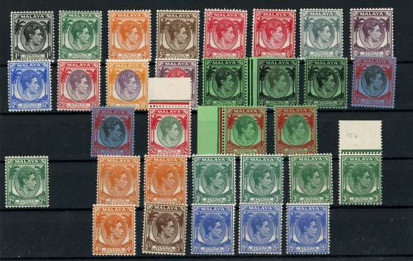 1937-41 set of eighteen plus fourteen extras, mostly shades per CW catalogue, lacking (by that listing) only the 2c yellow-green. Very difficult to assemble in this condition. SG 278-298