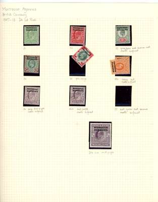 British Currency: mint on album leaves includes 1907 to 2s6d, 1914 to 1s, Seahorses 2s6d (6) and 5s, 1925, 1935 to 1s, 1935 2s6d and 5s (2), 1949, 1951 to 5s. Spanish Currency: 1907 to 12pi on 10s (2), Seahorses 2s6d (3), 5s (2) and 10s (3). French Currency: 1917-24 to 6f on 5s, plus Tangier 1949, 1950-51 to 10s and 1957 to 10s. Condition good to fine (hundreds)