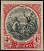 Barbados 1918-20 4d black and red, imperforate plate proof, on gummed paper; light overall toning. Fine and rare. Bayley...