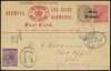 1893 provisional "One Penny" surcharge on ½d Stone and 1p Dull rose, Victorian adhesives (S.G. 19, 22), exceptionally UPRATED for Registration with 2d aniline purple, and sent to Aull, Germany, the stamps tied to card by “Hamilton/1” Duplex cancellation, with block ‘R’ duplex cancel at lower left and ‘London/Registered’ transit hs dated 27 December. Believed to be the sole example of this very rare provisional postcard sent via registered post. Existing stocks of postcards had the ‘One Penny’ surcharge applied as a result of the reduction in the overseas postcard rate to 1d. The vast majority of those surcharged were on the 1885 1½d red card (H&G 4/4a), and it is believed that just 80 of this type of card were surcharged, only a handful of which were used. A key showpiece for any Bermuda Stationery collection. Higgins & Gage 6 (Priced $750 used in 1976!)
