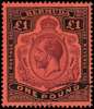 1918 £1 purple and black on red, registered cancel at bottom, fine used SG 55