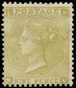1862 9d Straw Pl.2. Very fine and fresh unused large part og. example lettered KL. Lovely vibrant colour. Cat. £4000