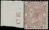 1876 8d purple brown, prepared for use but not issued, left hand marginal example showing part marginal inscription, brilliant large part o.g. very fine and rare, few marginal examples appear to have survived. RPSL Certificate (2004) SG 156a £6000