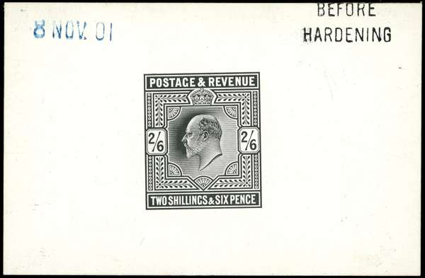 1901 2s6d Die proof. Very fine example printed in black on white glazed card (92 x 60mm), endorsed "BEFORE HARDENING" and dated "8 NOV. 01".