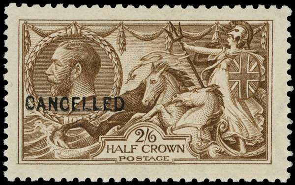 1915 2/6d deep yellow brown, optd ‘CANCELLED’ type 24, large part o.g. fine and scarce. SG 405var; Spec N64(1)t