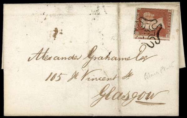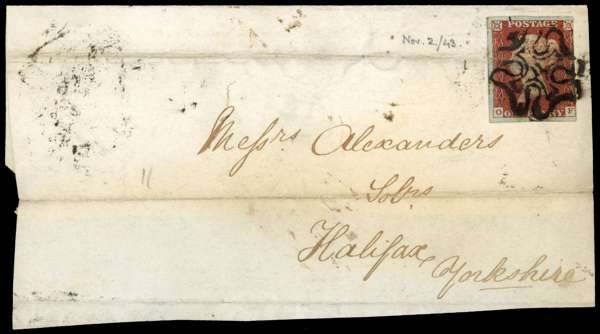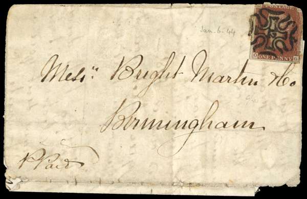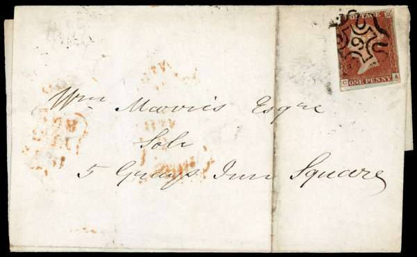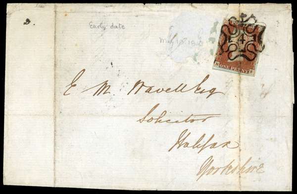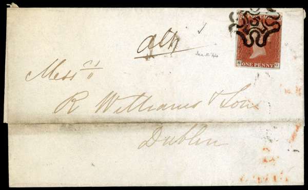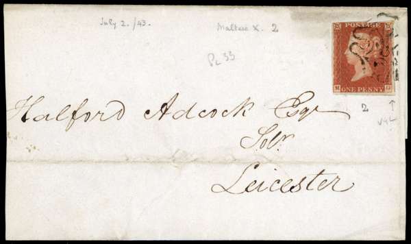 1841 1d reds on 1843-44 entires/covers (12), cancelled by numbers 1-12 in Maltese Crosses, the adhesives with 2 to 4 margins, many sound, a few with faults, but still a scarce grouping. Spec. B1ua/ul, £9,250