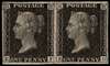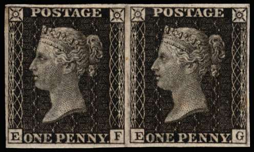 1865 1d black ‘Royal Reprint’, Plate 66, pair lettered EF-EG. O.g. with watermark inverted, good margins, fine save for slight foxing on the reverse of EG. From the only sheet printed. SG DP35a, £5000