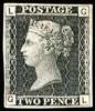 1867 2d Paris Exhibition proof in black, Plate 9, lettered GL, printed on soft white card. One sheet was printed. Spec. DP49a