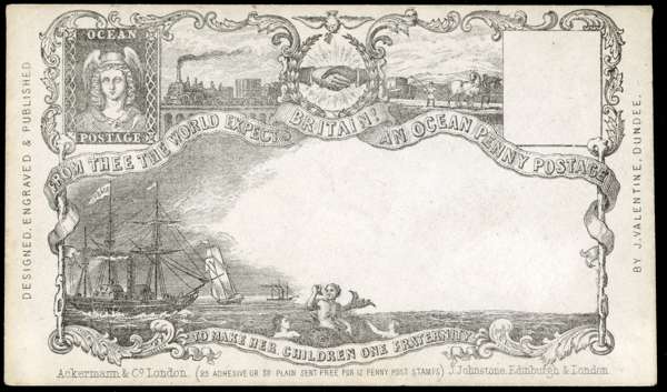 1840 J. Valentine's Ocean Penny Post printed envelope, unused. Good
