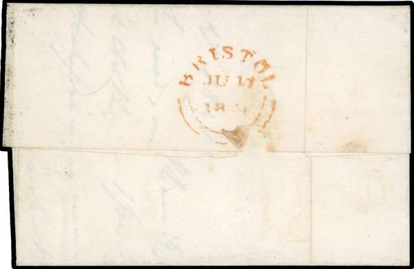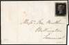 1840 entire addressed to Somerset, franked by 1d black Plate 2 (GA), four good to large margins, and tied by black MC, backstamped with orange Bristol ds for JU 17. SG 2, Spec. AS47