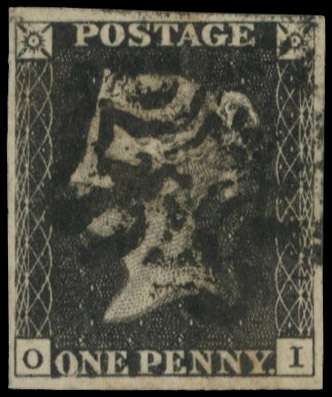 GB 1840 1d black Plate 10 (OI) black Maltese Cross