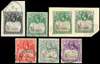 1924-33 issue used variety group, including ½d with cleft rock, 1d grey-black and bright blue-green (2, one on piece with the original shade), 1½d with broken scroll, 2d with cleft rock, 8d with cleft rock. good to fine. SG 10c/17c, £2,775. (6).