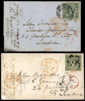 NEW SOUTH WALES 1855 and 1856 covers to London 5 and 3 charge h/s