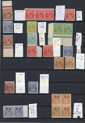 KGV heads predominately mint range with values to 1s4d arranged on large stockcards with selected blocks. Also a few officials. Generally good to fine. (56)