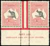 1931-36 £2 black & rose, watermark 15 (C of A), horizontal interpane pair with ‘John Ash’ imprint, mint large part o.g. the right stamp shows the ‘open-mouthed Kangaroo’ R55) variety, a rare and most fine item, with centring much above average. SG 138 cat £8500+