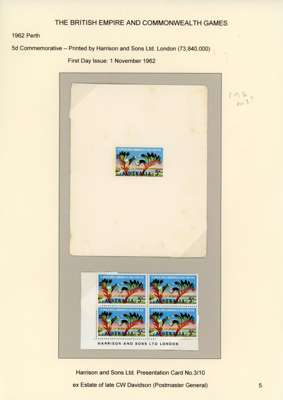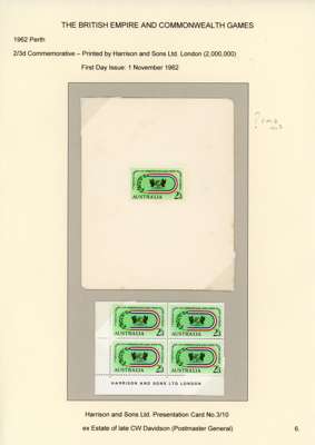 Australia 1962 Commonwealth Games Harrison & Sons Presentation cards