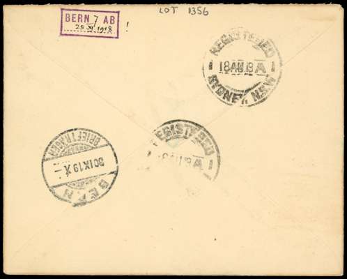1919 registered envelope to Berne bearing 5s grey and yellow, overprint Type 11. Tied by neat Rabaul CDS of 14 AU, backstamped Sydney and Bern. Neat. SG 116