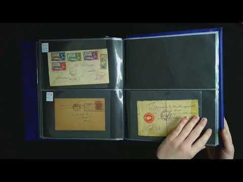 Postal History. Blue SG Major cover album with 1866-1966 collection (37 covers and cards, plus postal stationery; 10 used and 19 unused). 1866 envelope to Hoboken with 1863 4d perf 12½ (filing crease and small top edge tears but adhesive fine), War Tax covers, 1924 to Switzerland with Peace 1s, 1929 First Airmail stationery card, 1930 Nassau - Miami first flight with Tercentenary set sheet number examples, some foxing, 3d Tercentenary on Cedar cover with Cherokee Sound CDS, and much else