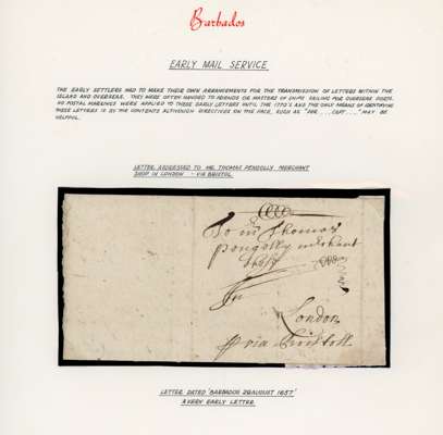 1657 entire letter, dated ‘Barbados 29th August 1657’, addressed to ‘’Mr Thomas Pengolly, Merchant Shop, London', endorsed ‘’Via Bristol'', archival folds and age-related wear, still a rare early letter, with interesting contents mentioning the shipment of sugar.