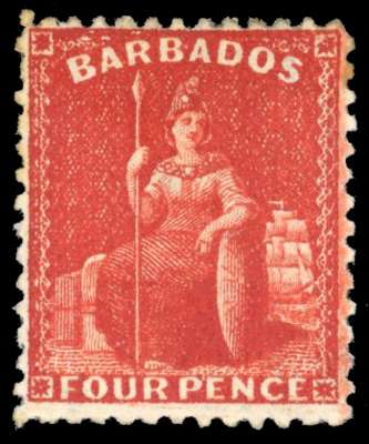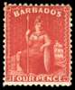 Barbados 1875-81 4d deep red, perf 12½, watermark inverted and reversed, SG 71y