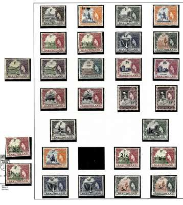 1933-66 mint collection with 1933 set large part o.g., 1938 set plus 1d Tower flaw unmounted, 1954 plus shades unmounted, 1961 decimal surcharges all listed Types plus the 2c inverted surcharge unmounted o.g., 1961 set unmounted, 1966 Lesotho overprints unmounted plus both LSEOTHO errors in pairs with normal unmounted