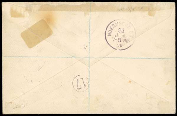 1888 registered Metz envelope to Germany, bearing 1865-1903 6d perf 14, 1880 4d and 1883-1904 ½d to 3d plus 1s, tied by Hamilton CDSs of JU 6. London transit on front and Nuremburg arrival on reverse. Odd minor marks, still neat and attractive, ex Sir Henry Tucker