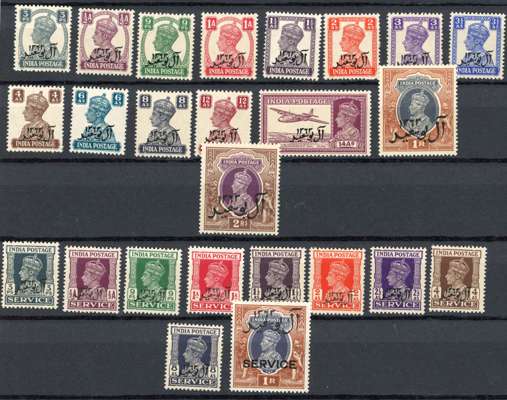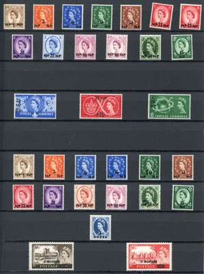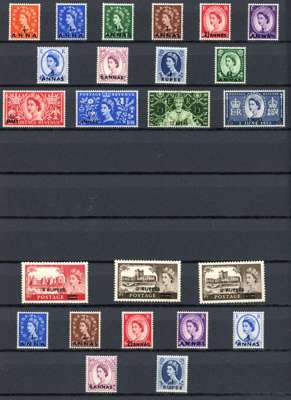 Muscat 1944 set and Officials unmounted; 1948 set unmounted; 1950 set unmounted with 2r Type II hinged, thence complete to 1960 set unmounted