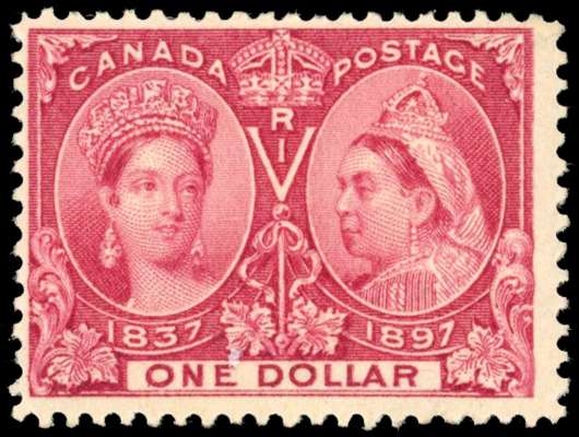 1897 Jubilee $1 lake, large part o.g. Centred to upper left, otherwise fine. SG 136, £600