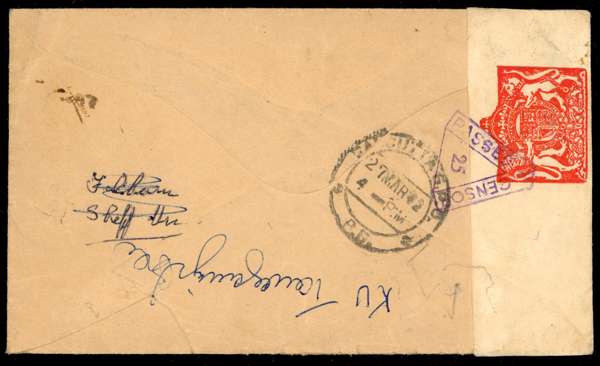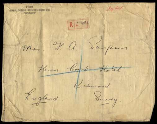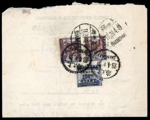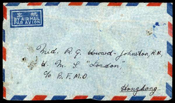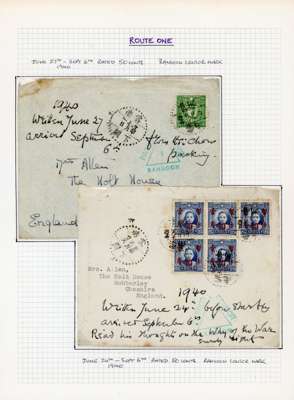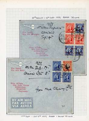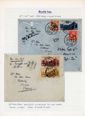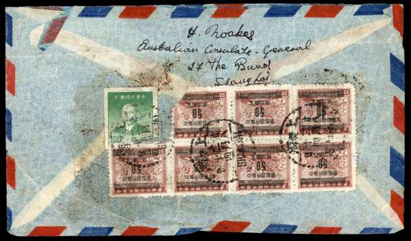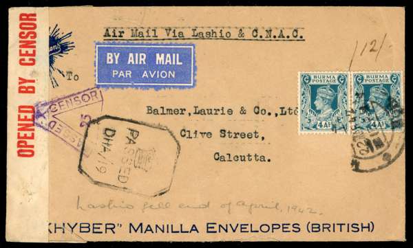 Group of airmail covers from Kunming to same address in England, the first endorsed Via Air France altered to Rangoon I.A.L., later two with Rangoon censors, later covers from July endorsed via Hanoi, 1942 airmail cover from Burma to Calcutta 'Air Mail Via Lashio & C.N.A.C., a couple of post-war items including a 1949 printed matter Shanghai invoice from Cercle sportif to a sailor on HMS London