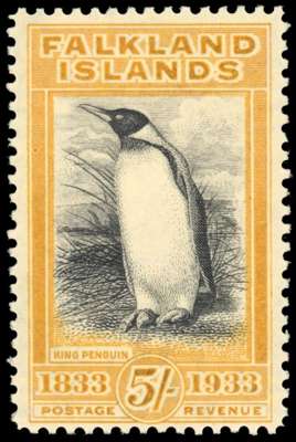 Falkland Islands SG 136a 1933 Centenary 5s black and yellow-orange mint