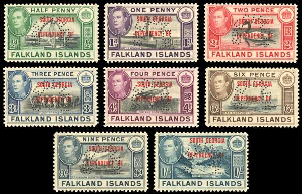 Falkland Islands Dependencies SG B1s/B8s 1944-45 South Georgia set of 8 perf specimen ‡