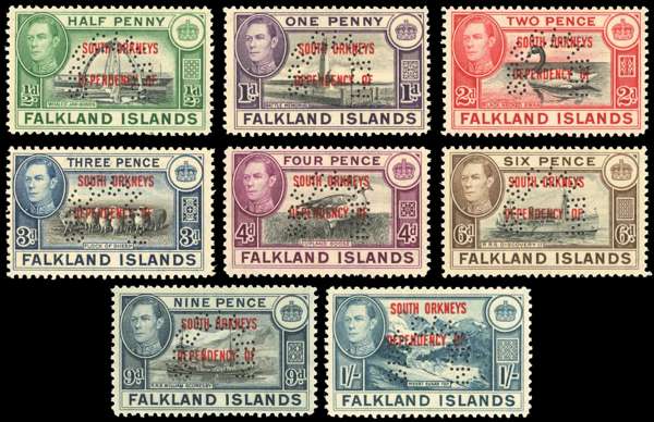 Falkland Islands Dependencies SG C1s/C8s 1944-45 South Orkneys set of 8 perf specimen ‡