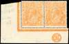 1914-20 4d dull orange, wmk 5, lower left corner horizontal pair from plate 2 with ‘JBC’ monogram, mint large part o.g., minor marginal bends otherwise fine and very scarce. SG 22d (BW 110H(2)z, cat A$1500)