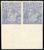 1924-25 3d dull ultramarine, wmk 5, lower marginal horizontal pair, error Imperf on three sides, mint o.g., minor gum wrinkles and right stamp with minuscule tone speck on gum, but spectacular and rare, with only around 36 pairs believed to still exist. SG 79a, cat £15,000