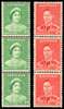 1938 1d emerald-green and 2d scarlet perf 15 x 14 coil strips of three with uniformly large holes, unmounted o.g. See footnote after SG 192. SG 180, 184, ASC 182bh, 188bh, $750 (for pairs)