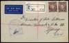 1942 registered airmail envelope to Sydney with two 3ds, cancelled solely by straight-line H.M.A.S. Melville in violet, another strike on registered label, and two strikes across the backflap. Sender on reverse, “E.C. Johnson HMAS Platypus”. Tombstone naval censor on front; reverse with APO 065 cancel of 3 JY 42 on reverse (based at Darwin)