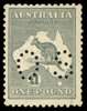 Official. 1923-24 £1 grey, wmk 6, type O2 ‘OS’ puncture, mint unmounted o.g., odd slightly shortish perfs but very scarce unmounted. SG O78 (BW 53b, cat A$4750)