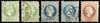 Austrian Post in Levant small group of Larnacca Di Cipro cancels with Coarse Whiskers 3sld used with one pulled perf and another with poor perfs at right, 10sld coarse (3) and fine whiskers 15sld with only small part cancel, 1881 and 1882 incoming entires from Trieste one with Larnaca cds and the other the squared circle, this also with Alexandrien thimble transit.