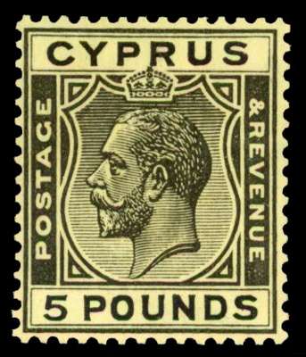 1928 £5 black on yellow paper, large part o.g., fine. SG 117a, £3750